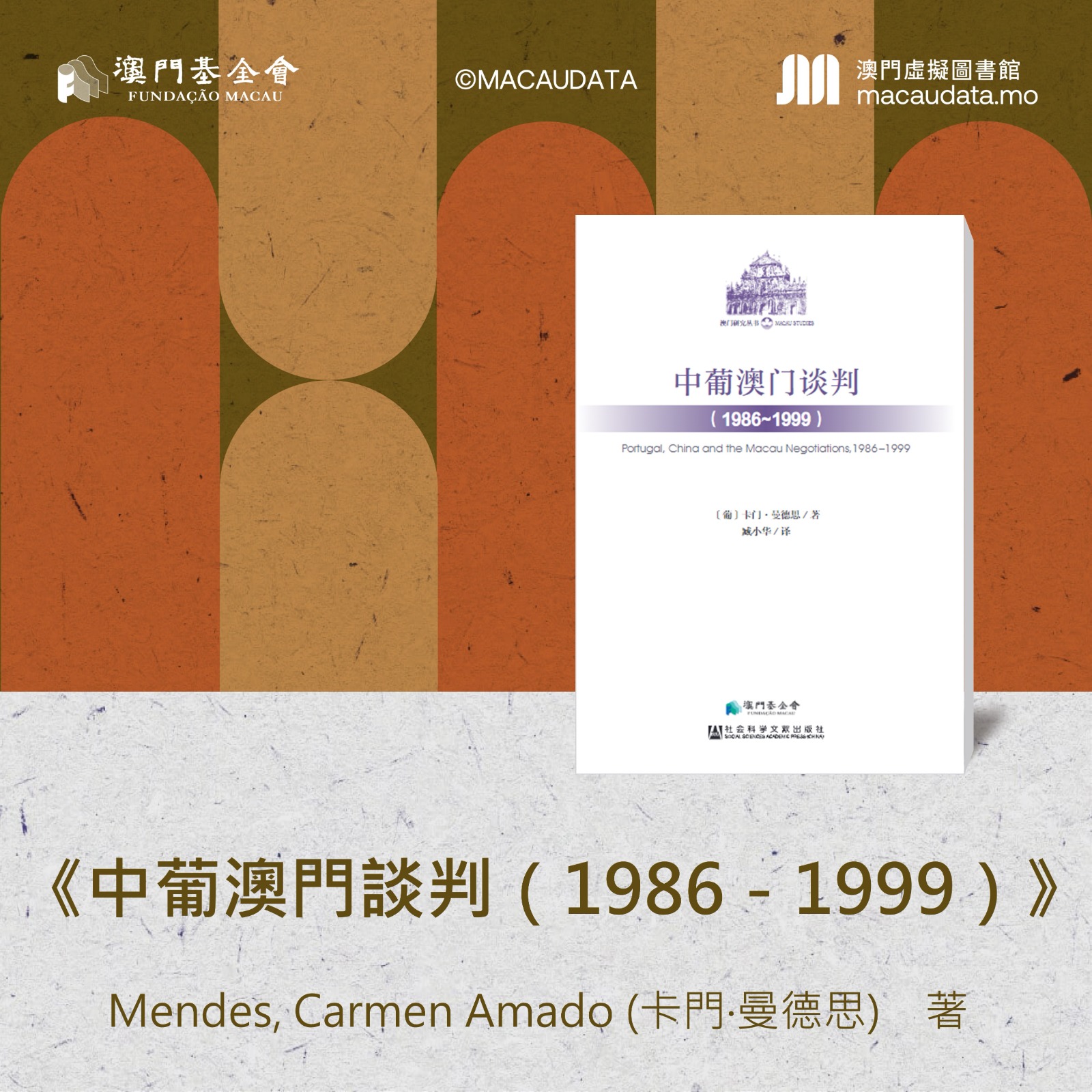 著者卡門‧曼德思(Carmen Amado Mendes), 為科英布拉大學(Universidade de Coimbra)教授;澳門大學、西班牙薩拉曼卡大學(Universidad de Salamanca)、法國里昂大學(Université de Lyon) 擔任客座教授; 葡萄牙天主教大學(Universidade Católica Portuguesa)政治學院的博士後學者。獲得葡萄牙里斯本大學(Universidade de Lisboa) 高等社會及政治科學學院榮譽畢業學士、法國斯特拉斯堡大學(Université de Strasbourg)高等歐洲研究所碩士、英國倫敦大學(University of London)東方及非洲研究學院博士。曾任科英布拉大學(Universidade de Coimbra)國際關係系主任、葡萄牙“中國觀察協會”(Portugal “Associação de Observação da China”)創始成員、歐洲漢學會(European Association for Chinese Studies)理事會成員(參與該會2014 年科英布拉大會的組織工作)、葡萄牙政治科學學會(Sociedade Portuguesa de Ciência Política)理事會成員(曾擔任該學會國際關係分會主席)、葡萄牙國防部聽證會(Audiência do Ministério da Defesa Português)成員、諮詢公司ChinaLink 的創始人之一。她在科英布拉大學負責協調有關澳門在中國與葡語國家之間所發揮作用的研究項目,以及由歐洲漢學研究及智庫網絡發起的南南合作研究項目。該項目由歐盟對外行動署資助。著有中國對外政策、歐盟中國關係及澳門問題等的論文或著作內的相關章節。