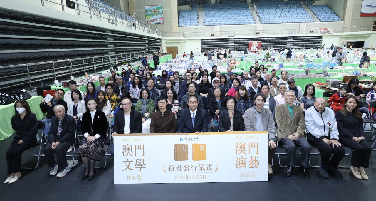 圖2 《2023-2024年度澳門文學作品選》及《2021-2024年度澳門演藝評論選》於2025年12月在塔石體育館“秋季書香文化節”會場舉行新書發行儀式。