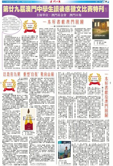 圖3 第三十一屆澳門中學生讀後感徵文比賽徵稿。