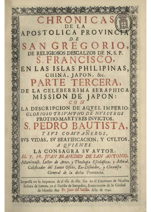 Chronicas de la Apostolica Provincia de S. Gregorio de Religiosos Descalzos de N.S.P.S. Francisco en las Islas Philipinas, China, Japon, &c. (Parte primeira)