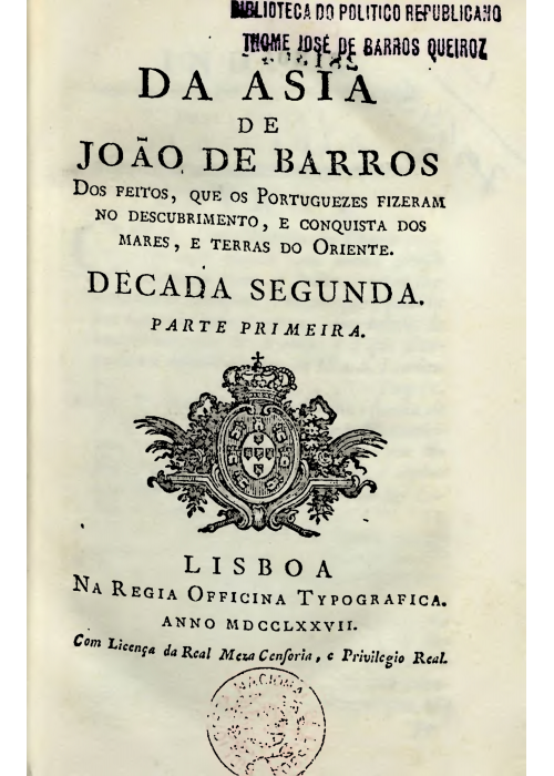 Da Asia de Diogo de Couto dos feitos, que os Portuguezes Fizeram na conquista, e Descubrimento das Terras, e mares do Oriente (Decada Sexta Parte Segunda)