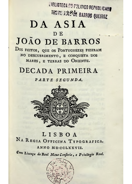 Da Asia de Diogo de Couto dos feitos, que os Portuguezes Fizeram na conquista, e Descubrimento das Terras, e mares do Oriente (Decada Nova)