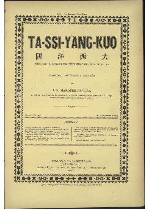 Ta-ssi-yang-kuo : archivos e annaes do Extremo Oriente Portuguez Serie Ⅱ-Volume Ⅳ 1903 Numero 5