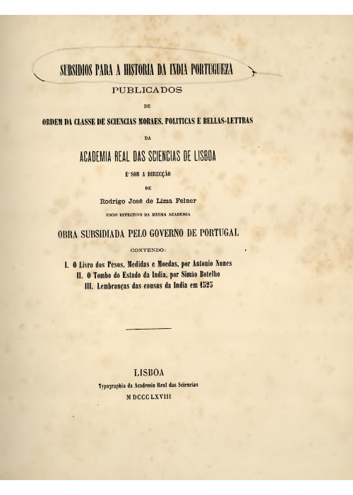 Felner, Rodrigo José de Lima | Typographia da Academia Real das Sciencias