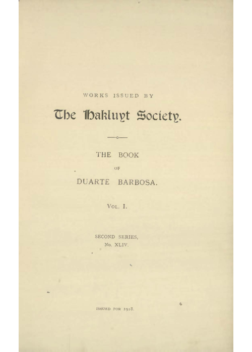 The book of Duarte Barbosa : an account of the countries bordering on the Indian Ocean and their inhabitants (Vol. I)