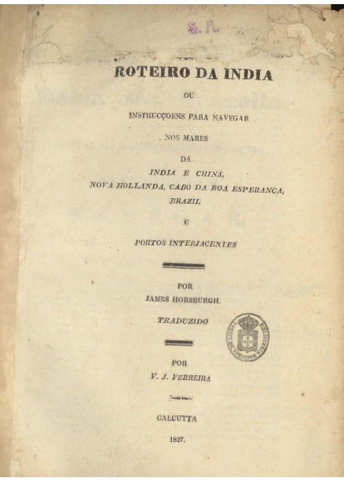ROTEIRO DA INDIA OU INSTRUCÇOENS PARA NAVEGAR NOS MARES DA INDIA E CHINA, NOVA HOLLANDA, CABO DA BOA ESPERANÇA, BRAZIL E PORTOS INTERJACENTES