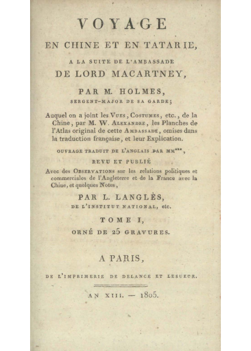 VOYAGE EN CHINE ET EN TATARIE, A LA SUITE DE L'AMBASSADE DE LORD MACARTNEY