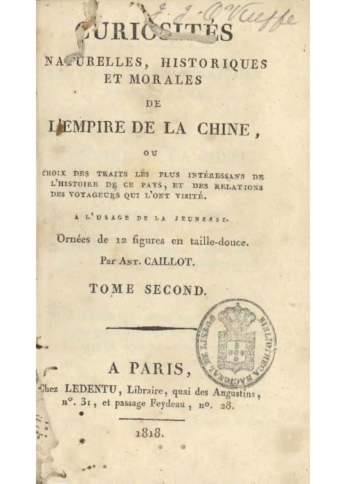 CURIOSITÉS NATURELLES, HISTORIQUES ET MORALES DE L'EMPIRE DE LA CHINE (Tome second)