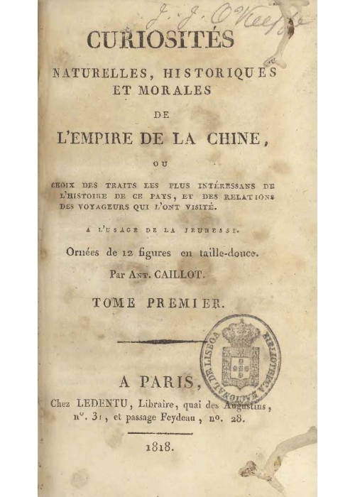 CURIOSITÉS NATURELLES, HISTORIQUES ET MORALES DE L'EMPIRE DE LA CHINE (Tome premier)