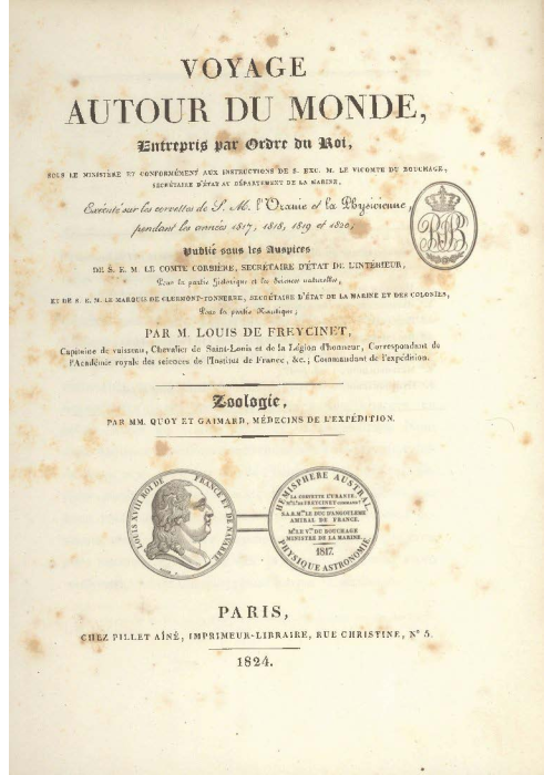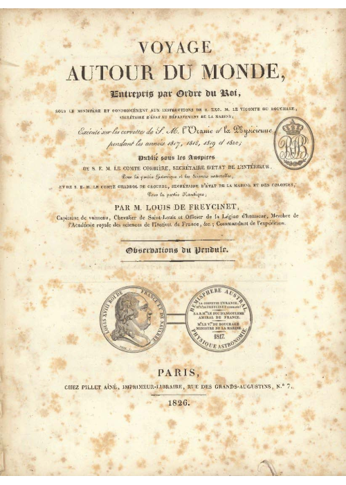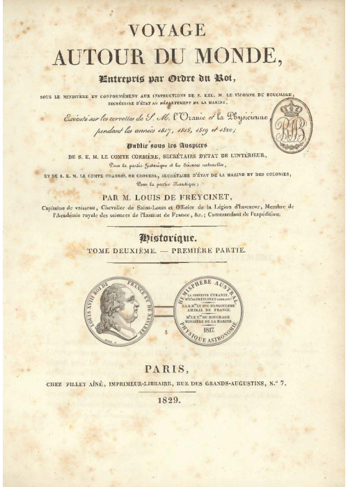 本書是19世紀初期法國最為重要的科學考察航行記録之一。此次環球航行由法國國王路易十八下令,在海軍部長布沙吉子爵的支持下展開,並在內政部長科比埃伯爵的贊助下出版。