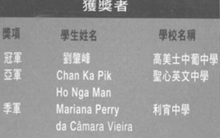 冠軍 劉肇峰 高美士中葡中學