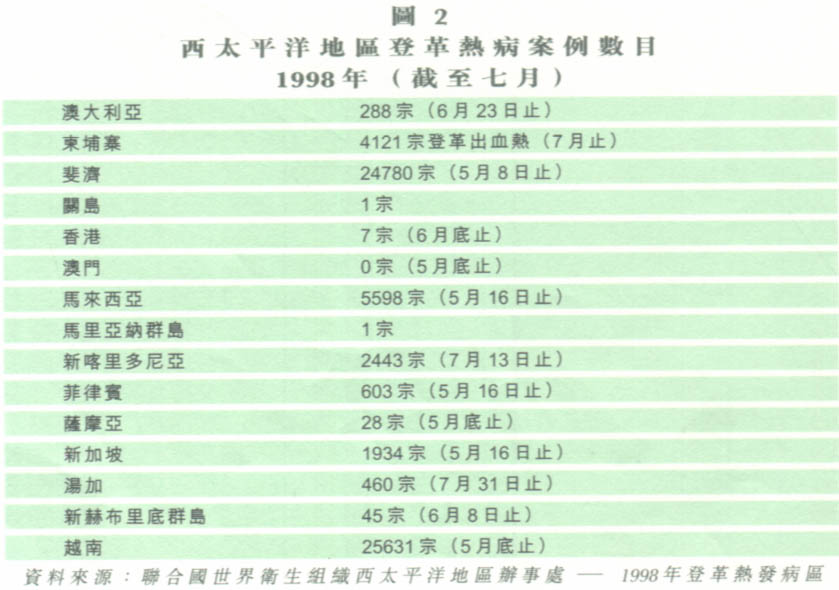 在澳門所處的聯合國衛生組織西太平洋地區,登革出血熱依然是威脅熱帶國家公眾健康的一種嚴重疾病,不管是發展中國家,還是現代工業化國家。