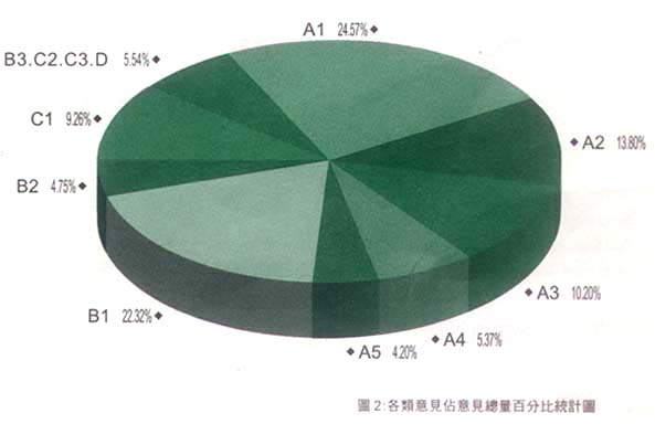 在所有的意見書裡,共涵蓋12334條具體意見,各分項意見則為: