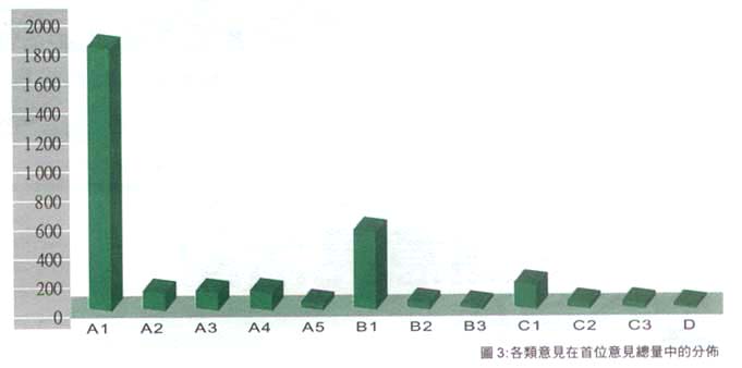 (一)這次諮詢活動反應良好,本中心共收到三千餘份意見書,遠遠超過了我們的預期目標,顯示出澳門市民對澳門的發展前景和社會事務,並非漠不關心。由於樣本數量較多是次諮詢結果應具有較高的信度,有利於日後對症下葯進一步提出可行性建議。
