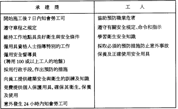 表9 承建商和工人的義務