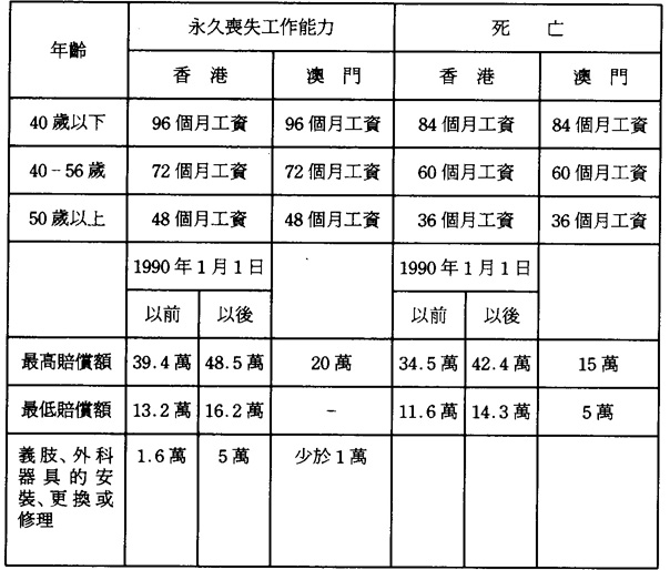 資料來源:香港:《僱員賠償條例》;澳門:《勞工保險》