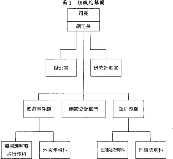 正如前文所述,身份証明司包括研究室、辦公室、身份証明廳、旅行証件廳及團體登記處等部門,但每個部門職責和功能均各不相同。