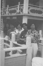 訪問三水縣,在三水公園合照,左一爲三水縣文聯副主席譚桂賢,右一是女詩人黃愛卿