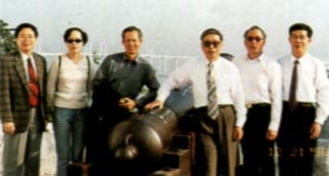 陳永標敎授(右一)、管林敎授(右三)、謝飄雲敎授<左一>與本會部分理事合攝於東望洋山上