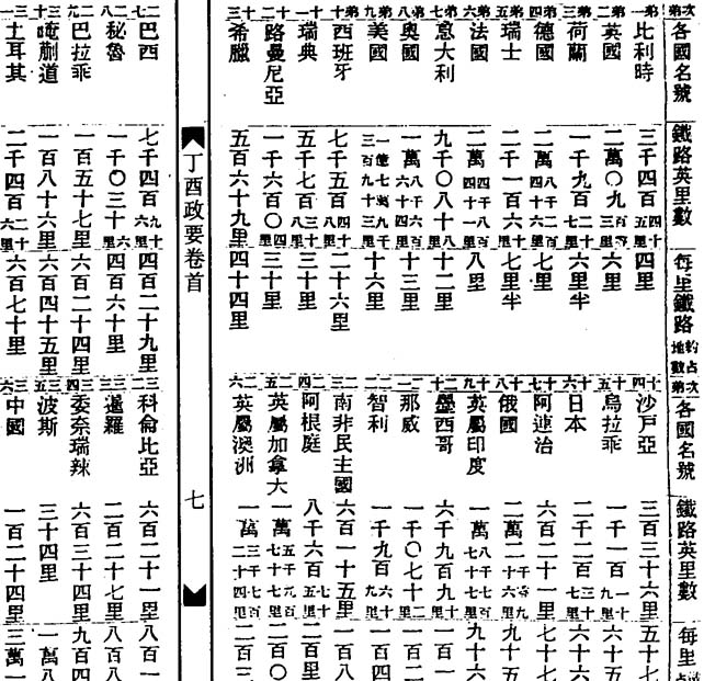 ,一千八百四十年,我國立一農務會,考求物性土性,並究植物以何法能使其壯,何法能令其弱,會中人到各處勸耕,教農圃種植,百年前德人一名烟河,一名非河者,能伸明植物之法至,今亦可師其遺法而悟新法焉,彼曾謂動物在於泥中,即是植物之肥料,如蚓蟲鱗介之屬是也,人第知糞溺爲肥料,不知泥土中所含之炭質五金質,亦能助植物生長,若泥土中所含之肥料不足,則下以硝磺疏打各物,權其輕重而下之,亦能培養植物,蓋植物之榮枯,必因時令,而下肥料者,亦須因時令,當既下肥料時,若得雨澤滋潤,而植物之根分吸之,皆有向榮之象,而成熟必稔,一千八百五十一年,德國知農學可以養民,畜類可以養農,故皇家設立農務學堂畜類學堂,自此學堂既開,而繼之者有數十間,由是農學大盛,故德國格致學農學,爲地球之冠,而各國遂從而效之,今我英農學師,一名專雷,一名亨利刼琶者,大有功於農務,一千八百九十三年,士加高賽大會,得膺重賞,夫考求植物,固爲農務之要,而考求畜類,亦農人所當留心也,蓋畜類之疾病死傷,亦由飼養者不得其法,今皇家購地五十畝,考求畜牧之法,以教農人,將畜類三百二十頭,使人飼之,種類雖同,而産於東西南北不同,食之多寡遲速不同,及至茁壯時,皆權其輕重而烹之,使醫士用藥水驗其皮肉,察其贓腑,分其肥瘦,編成一書,呈於朝廷,以示民間,使農人知何畜喜食何物,易於豢養,忌食何物,易於羸瘦,同是物以飼畜類,以何法爲無疾病,同是物以養畜類,以何產爲相宜,故農學家不可不講求也,工事 鐵線利用