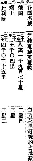 顯然大降,又熱度亦與傳電之性有關繫,科倫表每增一度,則阻電之力,亦增千分之三十五,故地方冬夏寒暑大差,而傳電之功用,亦差百分之十五至百分之二十也,商事 銅價增高