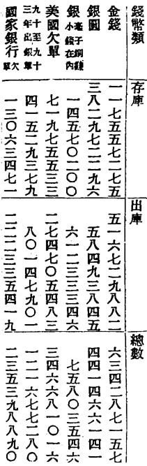 于国庫,今將八百九十六年十月六号,国家银行清单详下,