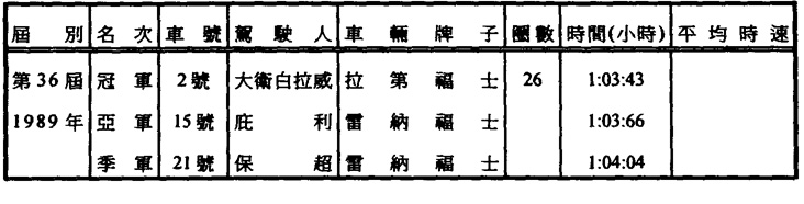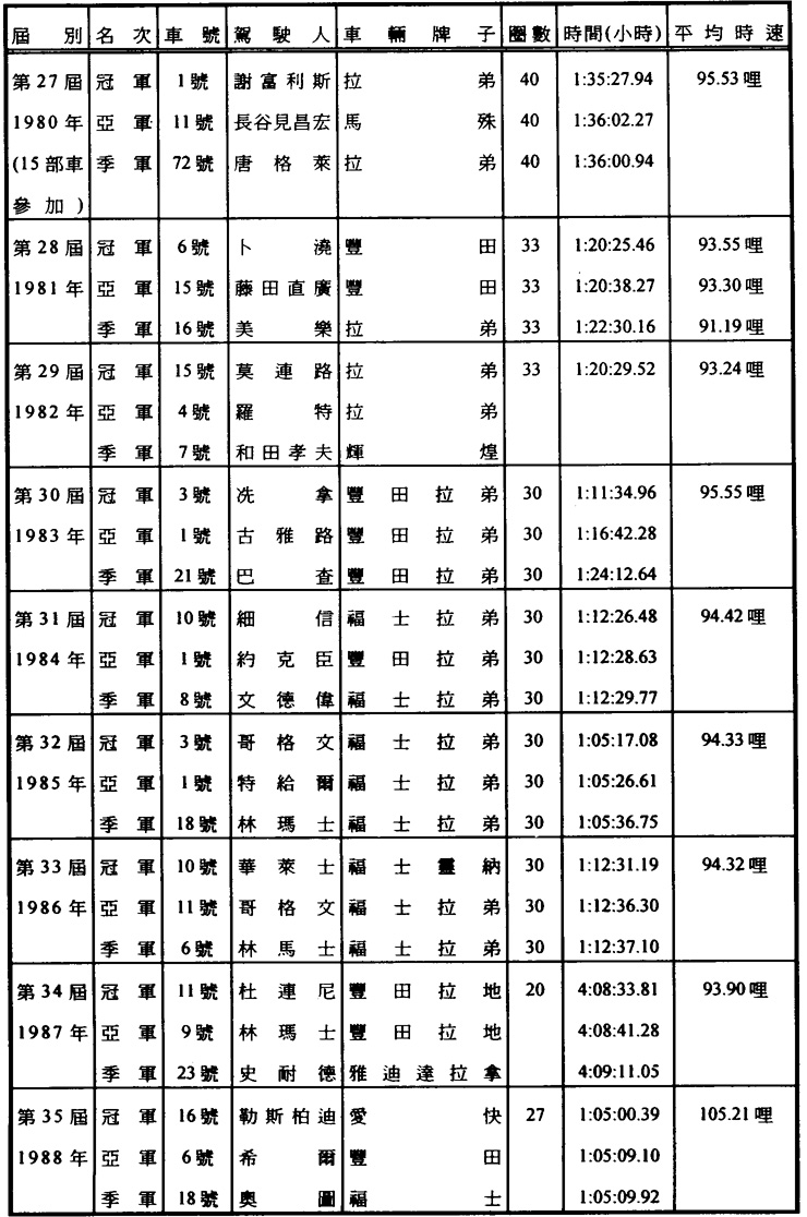 澳門格蘭披治大賽車歷屆成績表