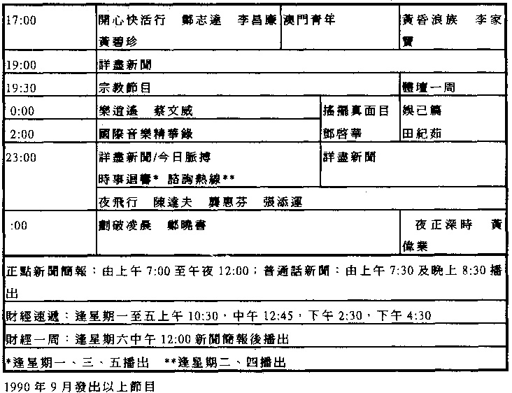 其他的人事部、會計部等部門都是與澳門電視台合用的。