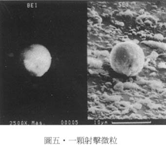 將載有射擊殘留物的採樣器放於掃描電子顯微鏡下,調較真空壓力至10-5托,然後觀察殘留物的微粒。