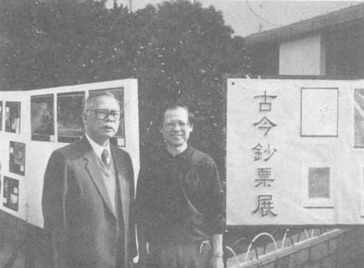 導師黃就順老師與陳子良老師在“古今鈔票展”前合照