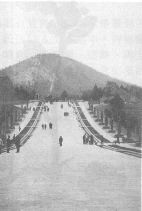 一到乾陵,立即就被它的雄偉氣勢深深的吸引:一條畢直的、寬闊的、長如巨龍的神道;朱雀門外司馬道的兩側,依次排列著標誌著帝王陵墓的八陵柱形華表一對、翼馬、朱雀各一對;爲皇帝乘騎的石馬共五對;戴冠持劍,侍衛皇帝的直閣將軍石人十對。以上種種的石刻,足以反映出唐代雕刻藝術的精湛。巨型的雕刻,手工精美,令人嘆爲觀止。從這些規模龐大的陵園建築,足可印證唐朝的盛世,不然,那會有如此氣勢磅礴的雄偉陵墓!