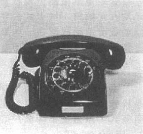 爲座檯式,機身仍爲金屬所造,較重;聽筒的設計特別,呈田螺狀。1955年的電話: