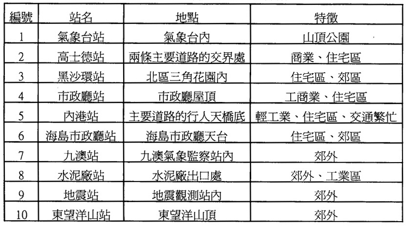 (一)十個固定氣象監察站