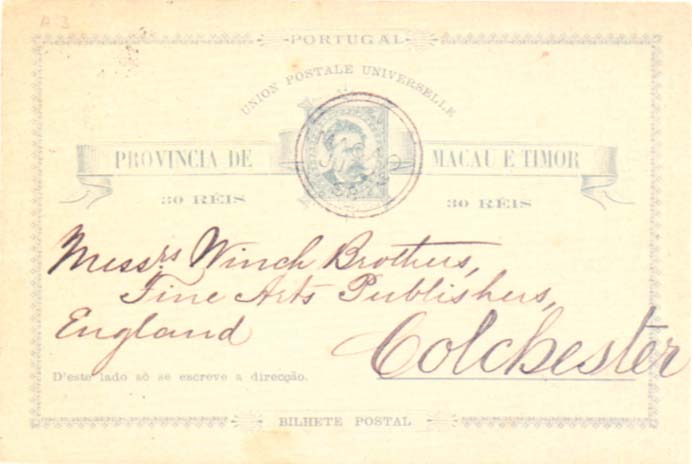 This is the first postal stationery card issued by the Post Office of Macau in 1885.