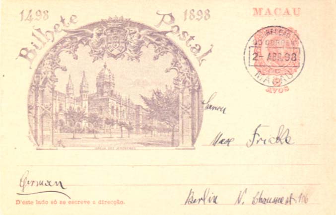 於一八九八年四月一日首次發行的風景郵資明信片,該套明信片為紀念華士古達嘉瑪發現印度航線四百週年。