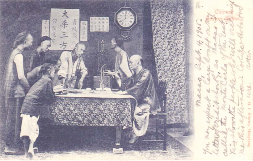在大三巴牌坊石級聚賭的人們(約一八九零年)