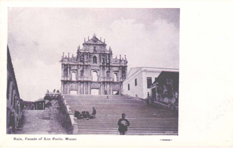 Gamblers gathered along the stone stairs (Terace) in front of the St.Paul’s Ruins (apprax. 1890)