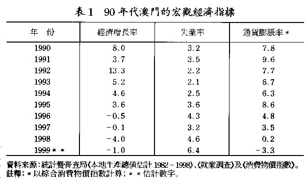 ②見陳守信:“澳門經濟衰退的宏觀分析”(1999)。