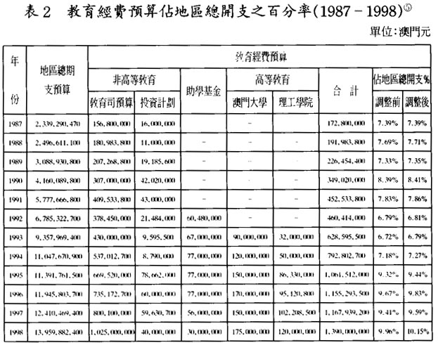 ⑨轉引自黎義明(澳門過渡期後敎育財政問題及其改革的方向硏究》。