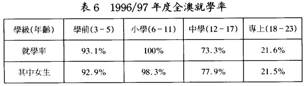 根據1996/97年統計曁普查司數字,全澳的敎育指標比較好。詳見表6: