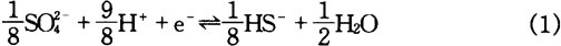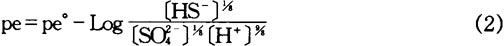 式(2)中,pe°爲標準電子活度的負對數,對於反應(1)其値爲4.25。〔HS-〕、〔S