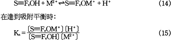 最近硏究表明,河口水域中的顆粒物質表面都有無定形結構形態的鐵氧化物〔11〕。重金屬在顆粒表面吸附本質上是金屬離子與氧化鐵表面羥基官能團的表面絡合反應,即