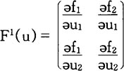 當n=1,F1(u)就是導數(derirative),當n>1,F1(u)就是耶可比矩陣(Jacobimatrix),譬如當n=2,