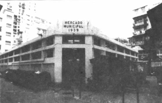 街市正门上嵌有“1939”字样,这是该街市重建的年份,距今已近60年了。据老街坊说,由于区内居民日众,早在100年前已设立街市,木质结构,分为两座,均红色瓦顶,坤甸梁架,以数条大圆柱作支撑,地面铺长形石板。入夜后,街市休息,江湖卖艺人就到此开档,出售丹药、耍猴子戏等等,颇为热闹。由于这旧式街市日渐颓废,1939年为有关当局拆卸,改建为新式街市。