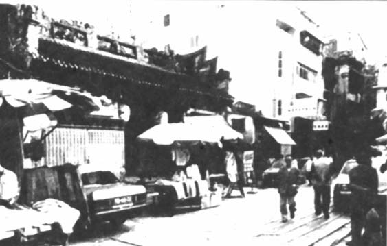 十月初五街中段有一座康真君庙,俗称康公庙,前临康公庙前地,路面还保留大片原始的条板石,与古朴的庙貌协调。这座建筑在现代闹市中显得很突出,受人注目。