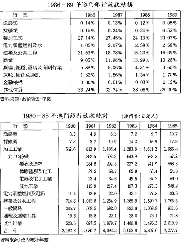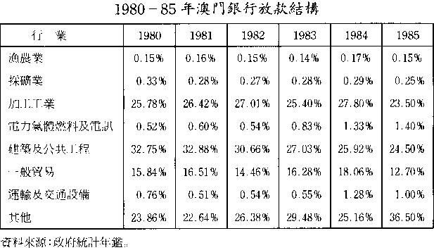 除上述的融資方式外,工業轉型也與商業銀行業務的積極推動息息相關。商業銀行本質上是創造信用的銀行。本澳的中小型企業的產品多以出口爲主,但出口市場的需求變幻莫測,令中小型企業較爲被動,爲了迎合市場的需要,這些中小型企業得採取靈活和快速生產的策略。因此,短期業務也是它們業務的一部份。進行短期業務,就亟需短期的資金融通,商業銀行是這種融資方式的主要金融機構。所以在工業轉型中,商業銀行除了具備匯集零星儲蓄方面有其重要功能外,在短期融資方面它還起着重要的作用。