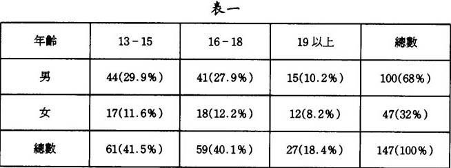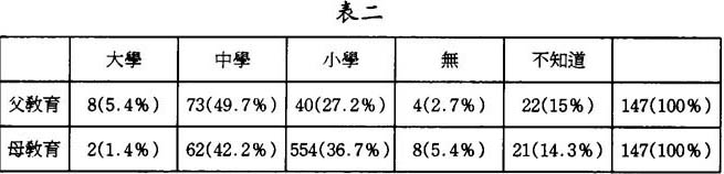 本硏究一共發出問卷一百五十份,最後收回有效問卷一百四十七份,回收率達百分之九十八。被訪者之背景資料歸納如下: