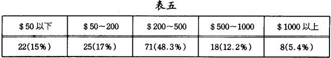 近年,澳門家庭經濟收入大大提高,很多雙職父母無暇照顧子女,又加上時下核心家庭子女數目祇在一兩個之間,於是來自父母,祖父母的零用錢便多起來。由表可見接近一半(48.3%)的被訪者,他們所得的零用錢平均每月都有200~500元,而有17.6%的被訪者得到500 或以上的零用錢,由此得知現今的靑少年的物質生活較爲豐足,大多數靑少年有追求名牌的傾向,靑少年花費不少金錢在衣服,鞋襪,手提袋,銀包,飾物等,這些花費亦多是父母資付。亦即表明其對他們的約束較過去爲小,甚至有不足的情况出現。