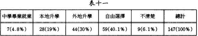 1.□中學畢業後就業 2.□本地升學 3.□外地升學