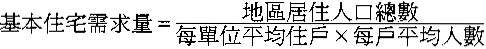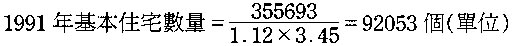 將上述的關係式,以1991年人口普查所得數字代入,可以計算出當時澳門居民所需的基本住宅數量: